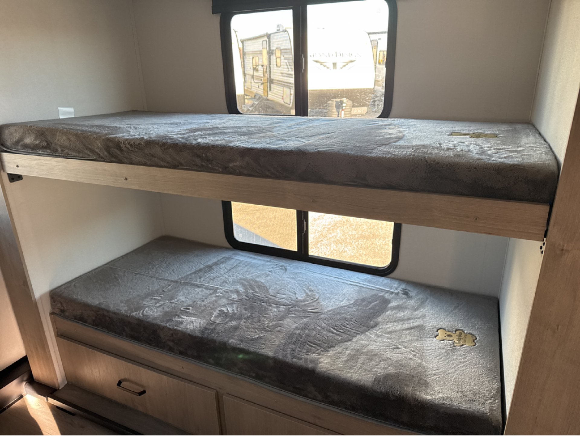 - Interior/Furnishings: Bunk Beds, Medicine Cabinet, Non-Smoking Unit, Queen Bed, Shower, Toilet